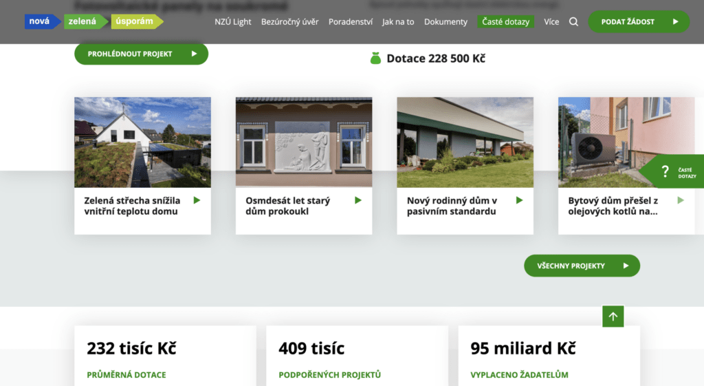 | Fotovoltaika + zateplení | až 140 000 Kč + zateplení | 30 000 Kč |